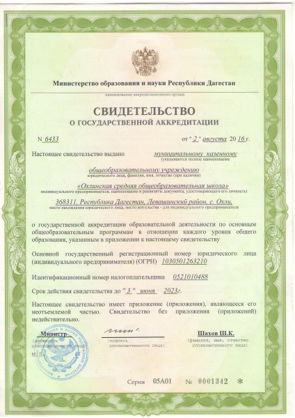 | Адрес местонахождения образовательной организации* | 368311, Республика Дагестан, Левашинский район, с. Охли |